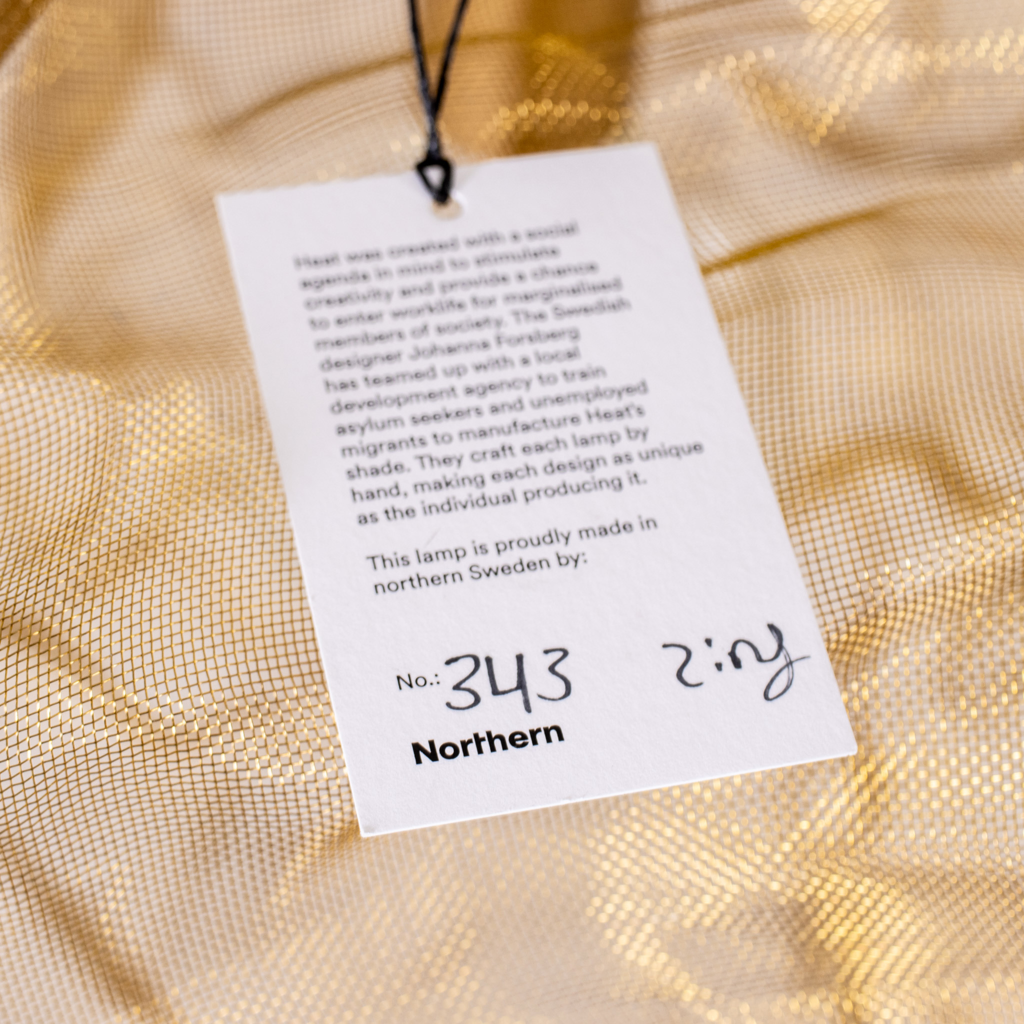 I många länder är det inte en självklarhet att kvinnor får möjlighet att lära sig läsa, vilket kan göra det svårt att tillägna sig ett nytt språk. Men praktiska färdigheter kan vara en styrka. Vi är stolta över att ha tre kvinnor anställda som driver vår lokala och hållbara produktion, däribland den unika lampan Heat, designad av Johanna Forsberg från Husum.